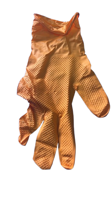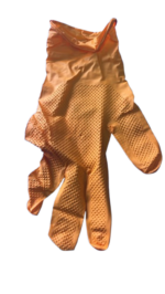 Guante Nitrilo naranja texturizado. Es un tipo de nitrilo de alto grosor, buena resistencia a Hidrocarburos, disolventes y químicos en general. Los atributos principales, cuenta con excepcional agarre en seco y mojado, entrega seguridad en la mayoría de las condiciones de trabajo, su color facilita distinguirlo, de gran duración que entrega seguridad a momento de utilizarlo sobre todo en manipulación de alimentos.