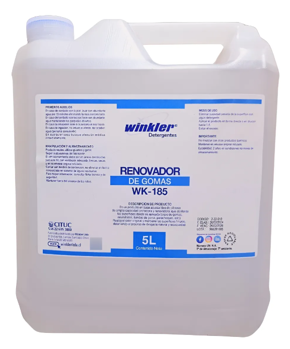 Es un producto en base acuosa libre de silicona, especialmente formulado para renovar todo tipo de caucho y poliuretanos (pisos de gomas, neumáticos, bandas de goma, parachoques, etc.) Su especial formulación y su rápido secado lo convierte en un producto anti-deslizante, realza el color original y mantiene las superficies limpias, deteniendo el proceso de desgaste natural y resequedad. Devuelve la memoria elastomérica , otorgando brillo y textura de una superficie nueva. Es un producto inofensivo en su manipulación.
